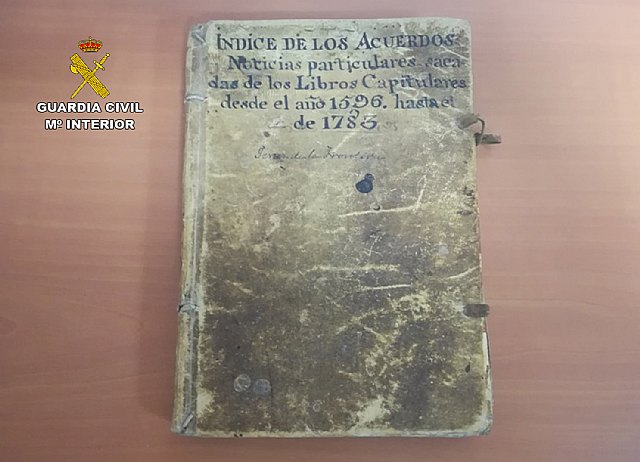 La investigación se inició a mediados del pasado año, cuando agentes del Equipo de Patrimonio Histórico de la Unidad Orgánica de Policía Judicial de la Guardia Civil se hallaban tras la pista de un libro inventario, datado en el S.XVIII, perteneciente al Archivo Histórico Municipal de Lorca, que faltaba de sus fondos muchos años atrás.