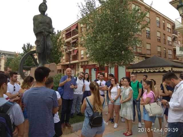 Más de medio centenar de estudiantes de la Universidad Católica San Antonio han recorrido a lo largo de esta mañana los principales atractivos turísticos de La Unión, comenzando por la Casa del Piñón, actual Ayuntamiento, donde les ha recibido el alcalde Pedro López.