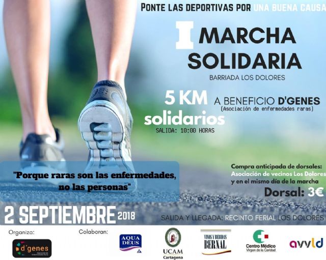 El próximo 2 de septiembre en el barrio cartagenero de Los Dolores hay una cita que unirá deporte y solidaridad. Ese día, la Asociación de Enfermedades Raras D´Genes anima a calzarse las zapatillas deportivas por una buena causa: la I Marcha Solidaria en la barriada de Los Dolores.