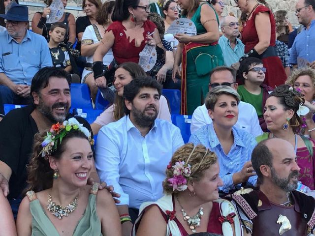“Los cartageneros pueden estar muy orgullosos no solo de sus 3.000 años de historia o de ser la cuna del continente europeo, sino también por lo que son capaces de hacer en estas fiestas de Carthagineses y Romanos”, subrayó López Miras, quien explicó que “esto es algo único que no sucede en otro lugar del mundo”.