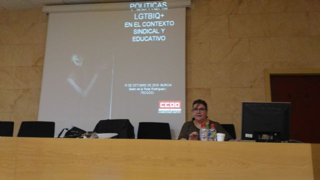 El evento organizado por Educafectos, sección LGTBIQ+ de la Federación de Enseñanza de CC.OO. de la Región de Murcia, tuvo como acto principal la conferencia de la activista Belén de la Rosa sobre políticas LGTBI en el ámbito sindical y educativo.