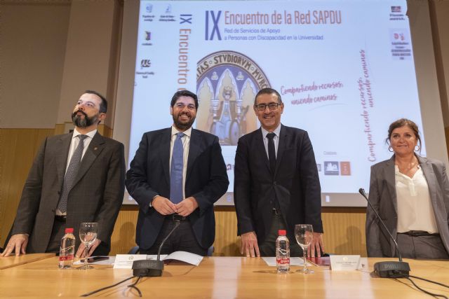 El presidente de la Comunidad, Fernando López Miras, aseguró hoy, durante la inauguración del IX Encuentro de la Red de Servicios de Apoyo a Personas con Discapacidad en la Universidad (Red SAPDU), que el desarrollo reglamentario de la Ley de Accesibilidad de la Región, en la que trabaja el Ejecutivo autonómico, "va a garantizar que el cien por cien de los centros universitarios sean accesibles para todos".