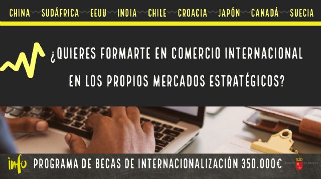 A esta iniciativa se destinan 350.000 euros, con el fin de sufragar las becas remuneradas de un año de duración, que permitirán a los beneficiarios formarse en comercio internacional en países cuyos mercados resultan especialmente atractivos desde el punto de vista económico para las empresas de la Región.