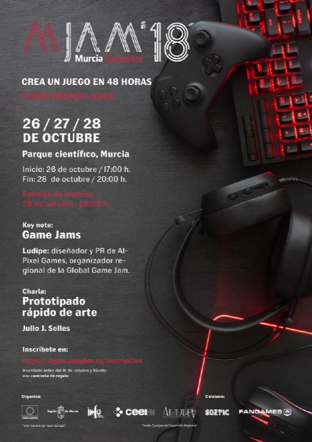 MJAM'18 también cuenta con la participación de las empresas Sozpic y Famgames, y está cofinanciada por Fondo Europeo de Desarrollo Regional (Feder). El equipo ganador de este reto será seleccionado por un jurado de expertos del sector del videojuegos y obtendrá un premio de 500 euros.