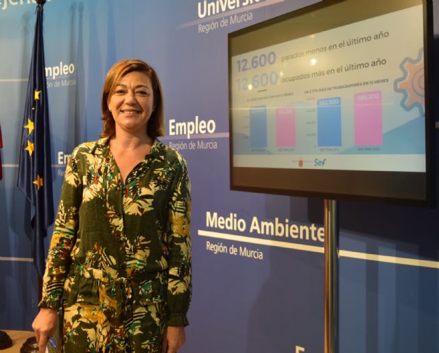 En doce meses, la Región ha pasado de los 128.800 desempleados a los actuales 116.200, y de los 582.500 trabajadores ocupados a los actuales 595.100. Esto supone que 35 personas han salido del paro cada día desde el tercer trimestre de 2017, y que otras 35 han encontrado empleo cada día.