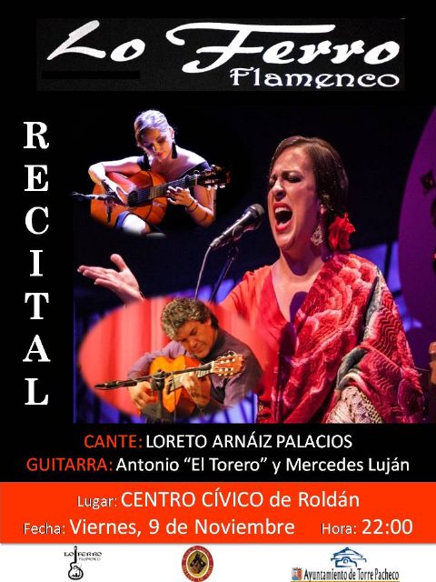 El próximo viernes 9 de noviembre a las 22h., el Centro Cívico de Roldán abrirá sus puertas al cante de la burgalesa que estará acompañada por nuestro guitarrista oficial, Antonio Fernández "El Torero".