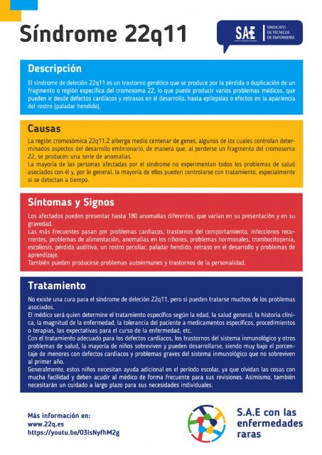 "Por supuesto, SAE se suma a estas reivindicaciones y, desde nuestra posición como representantes de los profesionales sanitarios, emprenderemos diferentes acciones formativas para dar a conocer este síndrome entre los distintos colectivos que integran las sanidad y contribuir así a un mayor conocimiento del síndrome 22q11", explica Daniel Torres, secretario de Acción Social y Formación de SAE y coordinador de esta campaña.