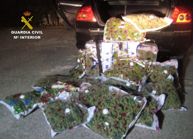 La Guardia Civil de la Región de Murcia ha detenido al conductor de un turismo en la autovía A-33, término municipal de Yecla, tras ser sorprendido transportando más de 22 kilogramos de cogollos de marihuana envasados al vacío.