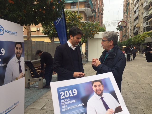 Los vecinos de Molina de Segura han podido conocer esta mañana dónde se van a invertir los 138 millones de euros destinados a su municipio, contemplados en los presupuestos del Gobierno de Fernando López Miras que entrarán en vigor el próximo 1 de enero y que benefician a las familias molinenes con nuevas bajadas de impuestos, entre otras medidas", ha destacado el candidato del Partido Popular a la alcaldía de Molina, José Ángel Alfonso, en la presentación de la campaña para explicar a pie de calle a los ciudadanos el contenido de las cuentas de la Comunidad Autónoma para el próximo año.