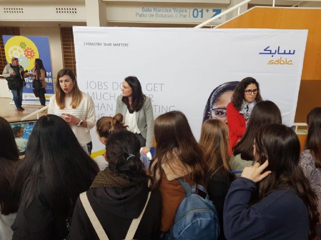 El Auditorio y Centro de Congresos de Murcia acogió ayer una multitudinaria gala, a la que asistieron 1.500 alumnos de Secundaria de diversos centros educativos de la Región e intervinieron mujeres que son un referente en diferentes ramas de la Ingeniería. Además, hubo actuaciones musicales, vídeos inspiradores, una zona de 'photocall' y varios stands informativos, entre ellos uno de SABIC.