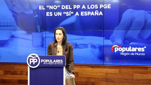 "Los PGE de Pedro son los del modelo socialista "mucha propaganda e inversiones para los separatistas y muy pocos resultados para España y para la Región de Murcia", ha dicho Nuria Fuentes quien considera que "nacieron muertos desde que Bruselas los puso en duda".