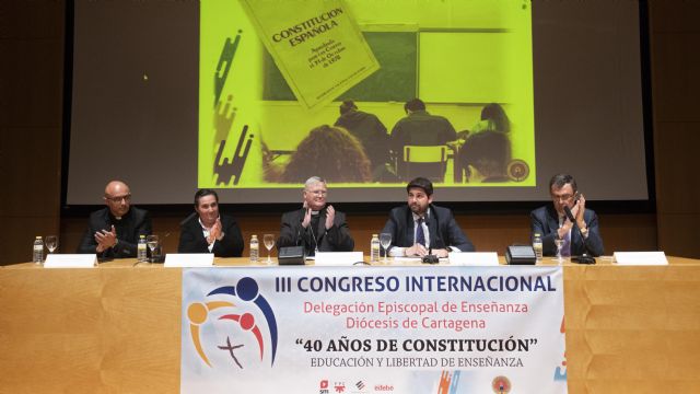 El jefe del Ejecutivo regional, Fernando López Miras, asistió hoy en el Auditorio y Centro de Congresos Víctor Villegas de Murcia al acto de apertura del III Congreso Internacional '40 años de la Constitución. Educación y Libertad de Enseñanza', donde destacó que "desde aquel 6 de diciembre de 1978 se forjó en España el más amplio marco de libertades y derechos de los que jamás se había disfrutado".