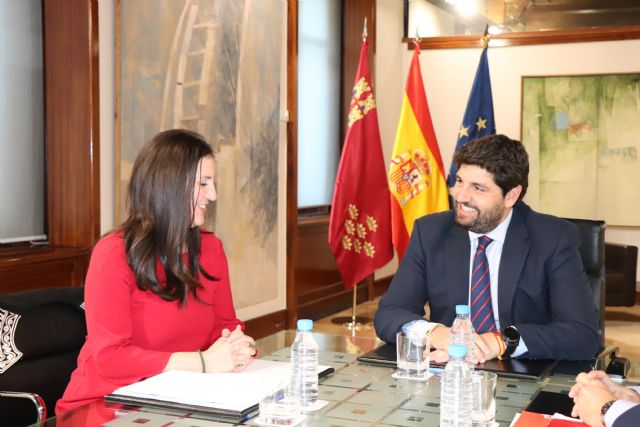 El jefe del Ejecutivo regional, Fernando López Miras, se reunió hoy en el Palacio de San Esteban con Maravillas Abadía, recientemente elegida presidentadel Colegio Oficial de Secretarios, Interventores y Tesoreros de la Región de Murcia, quien trasladó a López Miras las inquietudes y necesidades de este colectivo, así como los proyectos de su Junta de Gobierno.
