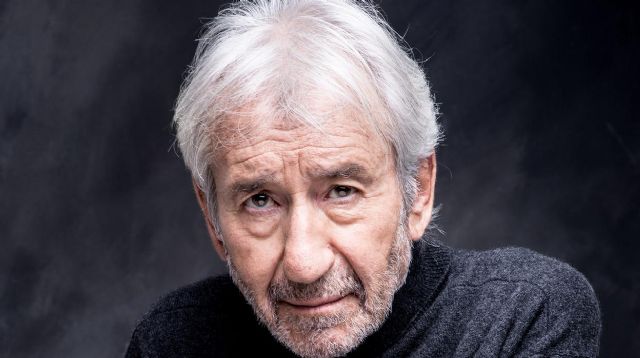 Sobre un fondo gris asoma, imponente y solitaria, la figura de José Sacristán.