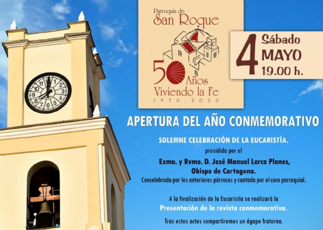 La iglesia parroquial de San Roque de Alcantarilla celebrará en 2020 el 50 aniversario de su erección canónica, realizada en 1970. Por este motivo, la parroquia ha organizado un programa de actos conmemorativos con el lema “50 años viviendo la fe”.