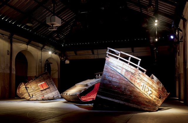 -La instalación de grandes dimensiones "Obertura", del artista murciano Angel Haro, que se podrá ver durante todo el festival en la sala de exposiciones temporales del museo ARQUA