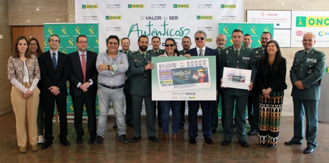 Juan Carlos Morejón de Girón, Delegado Territorial de la ONCE en la Región de Murcia, Jesús Arribas, Coronel Jefe de la 5ª Zona de la Guardia Civil en Murcia, y Josefa Navarro, Vicesecretaria General de la Delegación del Gobierno en la Región de Murcia, han presentado este cupón acompañados de Teresa Lajarín, Presidenta del Consejo Territorial de la ONCE en la Región de Murcia.