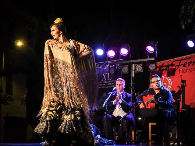 La velada dio comienzo a la vera de la premio "Molino de Lo Ferro" 2018 a la ferreña mejor cantada, Anabel de Vico, acompañada por el toque de Antonio Fernández "El Torero". La sevillana, ofreció un completo recital en el que nos llevó por malagueña, alegrías, soleá, ferreña, minera, tanguillos y fandangos.
