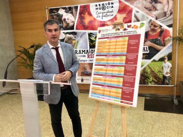 En la Región, un 80 por ciento de la producción está asegurada frente al granizo. El consejero anunció que se pedirá al Ministerio de Agricultura, Pesca y Alimentación las modificaciones necesarias que permitan ajustes en la línea de frutales y que se mantengan los niveles de contratación para hacer viable al seguro agrario en la Región de Murcia.