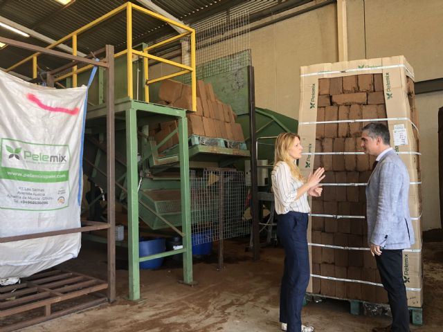 El consejero visitó hoy una de las empresas punteras en el sector de fibra de coco, Pelemix, radicada en Alhama de Murcia, donde comprobó los sistemas empleados para el acondicionamiento de este material inerte y su acondicionamiento personalizado a las necesidades de los productos bajo distintos sistemas de presentación, como sacos y macetas, entre otros, que permiten un mejor desarrollo de la planta y un incremento cuantitativo y cualitativo de la producción.