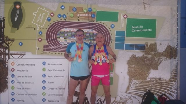 No faltó a la fiesta el atleta más veterano de la Región de Murcia, Antonio Martínez Olmos, quien se proclamaba campeón nacional M85 en 100m.l. (25.01), logrando la plata en 400 (2:07.67), mientras Donato Martínez, del Atletismo Roldán, sumaba a su extenso palmarés dos nuevos títulos, en 400m.l. (54.81) y 400m. vallas bajas M50 (1:00.00). Se hacía igualmente con el oro Catherine Duhig, del Millenium Torrevieja, en 5.000m. Marcha F60 (31:44.18), sumando hasta tres metales el atleta del Mandarache Cartagena Ángel Gómez en la categoría M70, bronce en 100 (15.65), plata en 200 (32.32) y bronce en 400m.l. (1:16.88).