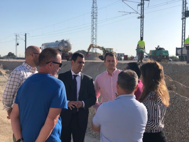 El consejero de Fomento e Infraestructuras, José Ramón Díez de Revenga, acompañado por los concejales del Ayuntamiento de Murcia, Rebeca Pérez y Marco Antonio Fernández, visitaron las obras de reparación de la línea de ferrocarril en la pedanía murciana de Alquerías, que corresponden a la tercera fase de la emergencia, tras el aviso a la población y la acciones de urgencia inmediatas al episodio de lluvias.