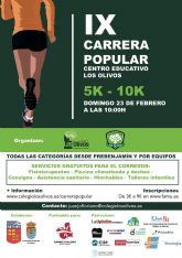 La 4ª cita del circuito de carreras populares de la Región de Murcia tendrá lugar en la IX Carrera Popular "Centro Educativo Los Olivos", dando la opción de completar 10 o 5km. en la prueba absoluta, con inicio previsto a las 10:00h.