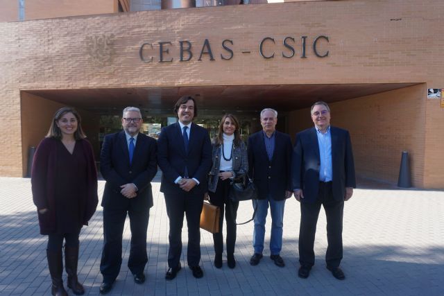 El consejero de Empleo, Investigación y Universidades, Miguel Motas, acompañado por la directora general de Investigación e Innovación, Isabel Fortea, y por el director del centro, Juan José Alarcón, visitó el Centro de Edafología y Biología del Segura (CEBAS), dependiente del Consejo Superior de Investigaciones Científicas (CSIC). Además, expresó su intención de apoyar en todo lo que esté en su mano "la candidatura del centro como organismo nacional de excelencia investigadora".