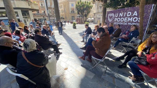 Esta mañana, Unidas Podemos Región de Murcia ha convocado a un centenar de personas en la asamblea abierta que la coalición ha organizado para explicar el acuerdo de gobierno firmado junto al PSOE para "responder a la obligación y a la necesidad de contar con un gobierno que dé respuestas a los retos urgentes de nuestro país desde un óptica que proteja a la mayoría social y recupere los derechos sociales y servicios públicos perdidos durante la última década". En este acto, el diputado de Unidas Podemos por la Región de Murcia, Javier Sánchez Serna, repasado las medidas aprobadas por el Consejo de Ministros, como la subida del salario a los funcionarios para "dignificar lo mejor que tenemos en este país, que son los servicios públicos", el aumento en la cuantía de las pensiones para "proteger a nuestros mayores, que salieron masivamente a la calle para defender sus derechos, y sin los que este gobierno de coalición no hubiera podido avanzar en este sentido", la aprobaciónd e la Ley de Emergencia Climática, que "va a hacer que este país esté a la vanguardia de las políticas verdes y ecologistas", o la subida del Salario Mínimo Interprofesional (SMI), que afecta "a más de tres millones de trabajadores, más de 65.000 en nuestra Región", algo que "va a hacer que muchas familias que llegaban justas a final de mes, puedan llegar un poco mejor".