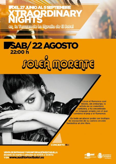 Soleá Morente llega al Auditorio El Batel para presentar su último trabajo discográfico, 'Lo que te falta'. El ciclo de las Xtraordinary Nigths ofrece este concierto el sábado, 22 de agosto, a las 22:00 horas.