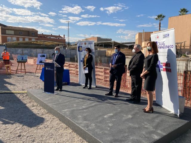 El acto de colocación de la primera piedra ha contado con la presencia, entre otros, del presidente del Gobierno Regional, Fernando López Miras, el obispo de la Diócesis de Cartagena, José Manuel Lorca, y la vicepresidenta del Gobierno Regional, Isabel Franco
