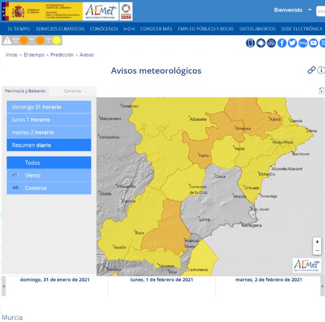 La Agencia Estatal de Meteorología mantine y actualiza fenómeno adverso de nivel amarillo por viento en Altiplano y Noroeste, que finalizará mañana día 1 de febrero a las 11:00 horas.
