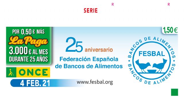 Con este cupón, se pretende, además, celebrar los 25 años de la Federación Española de Bancos de Alimentos en España y destacar su extraordinaria labor, que les ha hecho merecedores del reconocimiento de la ciudadanía y de premios como el Príncipe de Asturias de la Concordia en 2012, justo un año antes de que este galardón recayera también en la ONCE.