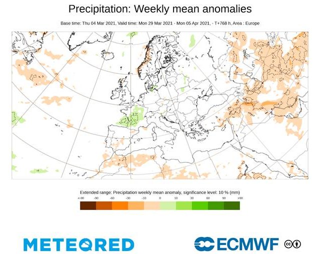 Durante esta Pascua, considerando la semana 'larga' del 28 de marzo al 4 de abril, se esperan precipitaciones con valores normales en gran parte de la Península. Solo en puntos como el Estrecho, Sierra Morena, las regiones más occidentales de Andalucía, el interior de Cataluña y la parte occidental de Canarias, contaremos con lluvias cuyos valores se situarán por debajo de la media. Esto supone que esas zonas tendrán un tiempo más tranquilo de lo que viene siendo habitual en estas fechas.