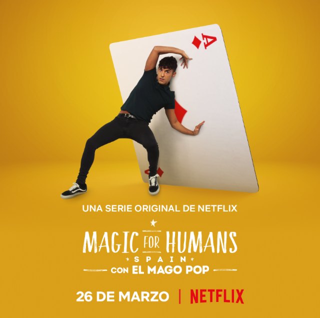 El próximo viernes 26 de marzo Netflix estrena "MAGIC FOR HUMANS SPAIN CON EL MAGO POP", un increíble show de magia conducido por Antonio Díaz "EL MAGO POP", el mago europeo más taquillero del mundo y el artista español que más entradas ha vendido durante los últimos tres años.