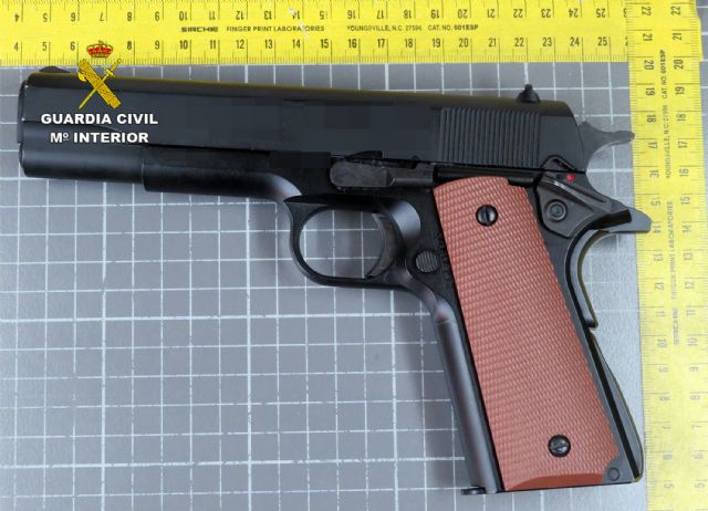 La Guardia Civil continúo con la investigación, dirigida por especialistas en Policía Judicial, que le llevó hasta un domicilio del municipio archenero donde, tras obtener todos los indicios necesarios y previa autorización judicial, los guardias civiles llevaron a cabo al entrada y el registro del mismo en el que se halló el arma de fuego utilizada en el atraco una pistola de aire comprimido imitación de una de fuego real del calibre 45 ACP y las prendas vestidas por los sospechosos, que finalmente han sido detenidos como presuntos autores de delito de robo con violencia e intimidación.