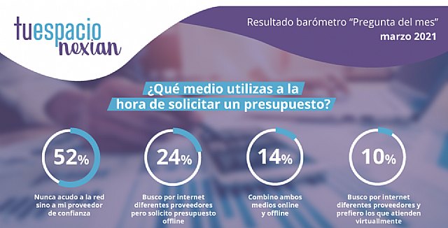 El 52% de los participantes en el Barómetro mensual puesto en marcha por Nexian afirman que nunca acuden a la red, sino a su proveedor de confianza, mientras que, el 10% buscan por internet y prefieren los proveedores que atienden virtualmente