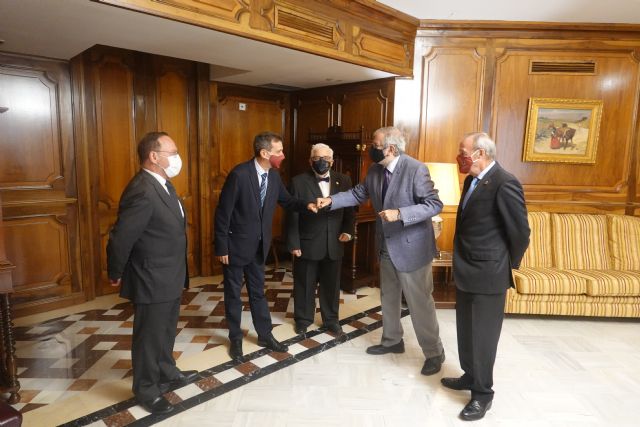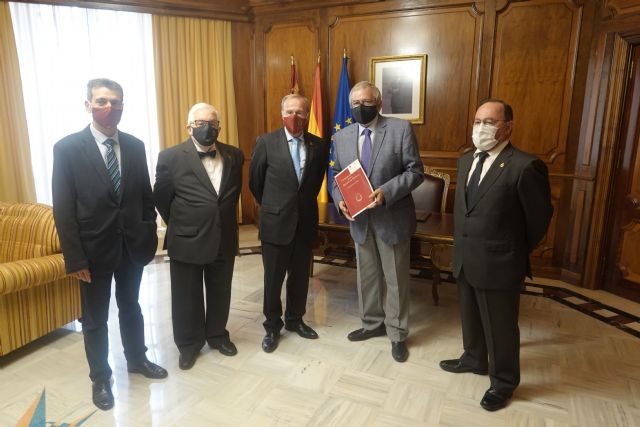 El presidente de la Asamblea Regional, Alberto Castillo, ha recibido hoy de manos del presidente del Consejo Jurídico de la Región de Murcia, la memoria anual de este organismo correspondiente a 2020. Gómez Fayrén ha estado acompañado en este encuentro en la sede parlamentaria de los Consejeros Manuel Martínez-Ripoll, y Luis Gálvez Muñoz, además del Secretario General, Manuel María Contreras Ortiz.