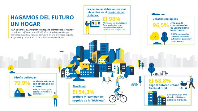 Pero lejos de mirar el pasado, en este Aniversario IKEA quiere asomarse al futuro y consultando a jóvenes entre 12 y 18 años cómo les gustaría que fueran las ciudades y hogares del futuro, en una investigación junto a SigmaDos y con la asesoría de la Plataforma de Infancia.