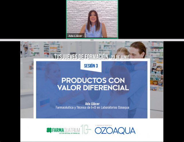En una nueva sesión de "Tus Jueves de Formación" sobre "Productos con valor diferencial" Ada Llácer, farmacéutica especializada en Dermofarmacia y técnica en el Departamento de I+D de Laboratorios Ozoaqua, ha destacado la importancia de introducir productos innovadores, eficaces y seguros en los protocolos de actuación Dermofarmacéutica para, desde el consejo profesional, ofrecer las soluciones más adecuadas que mejoren la calidad de vida de los pacientes