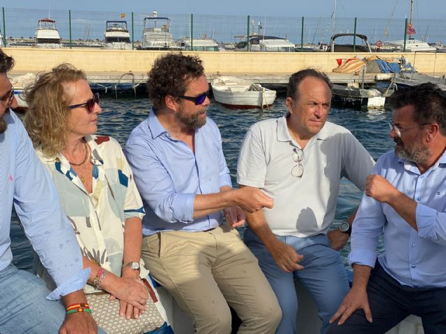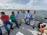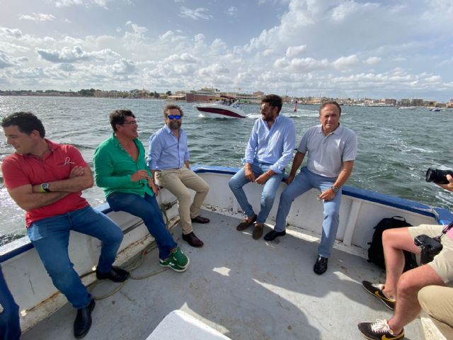 El portavoz del VOX en el Congreso de los Diputados ha estado acompañado en su visita al Mar Menor de los diputados nacionales por Murcia Lourdes Méndez, Joaquín Robles, Luis Gestoso y el presidente provincial José Ángel Antelo, así como del diputado regional Pascual Salvador, el senador José Manuel Marín y miembros del CEP y vicesecretarios con quienes ha subido al pesquero de la Cofradía de Pescadores y ha conocido de primera mano el Mar Menor.