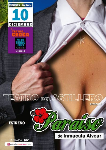 A un ejecutivo de una importante corporación empresarial le realizan un trasplante de corazón. Este comienza a tener vida propia haciendo que el ejecutivo comience a sentir, a pensar, a desear y a comportarse como su anterior dueña, una prostituta dominicana. Esto es Paraíso, la nueva obra de teatro del colectivo de dramaturgos Teatro del Astillero, con texto de Inmaculada Alvear e interpretación de Chema Ruíz, que llega a la Fundación Mediterráneo dentro del ciclo Teatro de Cerca para hacer su estreno a nivel nacional.