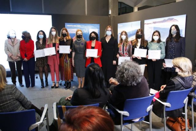 En la imagen, la vicepresidenta y consejera de Mujer, Igualdad, LGTBI, Familias y Política Social, Isabel Franco (5d), junto a las premiadas en la tercera edición del Premio a Jóvenes Científicas de la Región de Murcia y representantes de Lyceum de Ciencia de la Región.