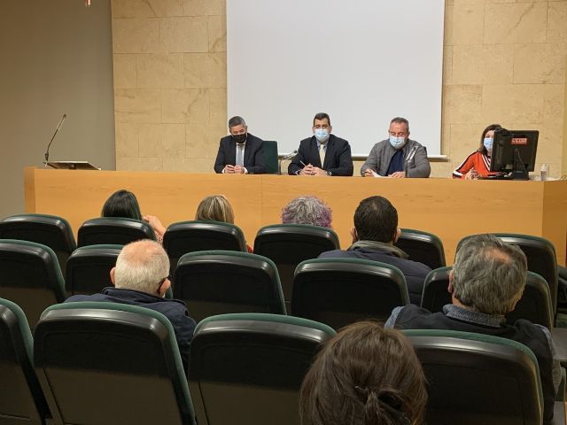 El consejero de Fomento e Infraestructuras, José Ramón Díez de Revenga, mantuvo un encuentro con el secretario general de CCOO Región de Murcia, Santiago Navarro, y miembros de su Comisión Ejecutiva, con el fin de recabar sus opiniones y propuestas y "fijar una hoja de ruta estable de las infraestructuras, para garantizar su ejecución ante los responsables políticos de las distintas administraciones, sean del color que sean, y evitar cambios de rumbo cuando cambian los responsables políticos".