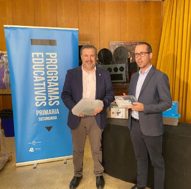 El Salón de Actos del IES Francisco Salzillo de Alcantarilla acogió ayer el acto de entrega de los kits de robótica del programa 'El Cable Amarillo', al que acudieron el director general de Formación Profesional e Innovación, Juan García Iborra, y el director general de Informática y Transformación Digital, Javier Martínez Gilabert.