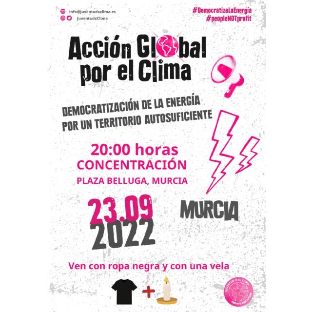 Por todo ello animamos a la movilización ciudadana con una concentración en la plaza Belluga este viernes 23 de septiembre a las 20 horas con motivo de la Huelga Mundial por el Clima promovida por Juventud por el Clima , porque la lucha sigue. Debemos continuar impulsando el cambio que queremos, un cambio que ponga en el centro a las personas, los territorios y la Tierra, sin dejar a nadie atrás, donde tener acceso a la energía sea un derecho, no un privilegio.