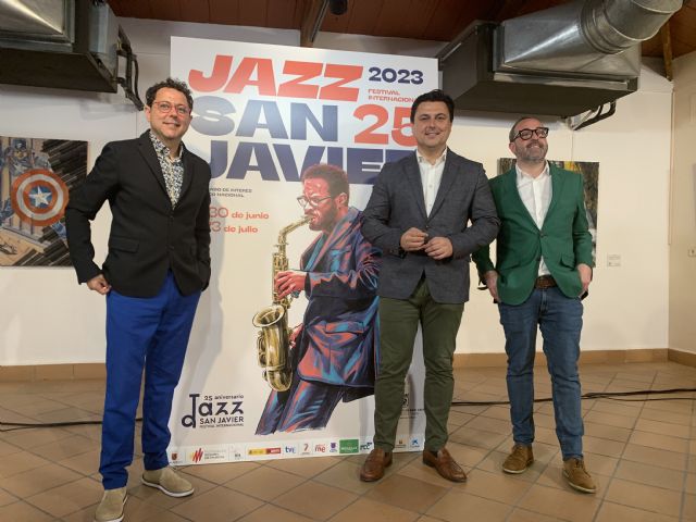 En la imagen, el director del ICA, Manuel Cebrián, el alcalde de San Javier, José Miguel Luengo, y el director del Festival de Jazz, David Martínez, tras la presentación del evento.