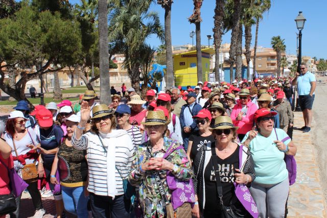 Tras la charla comenzó la caminata de "10.000 pasos saludables" por la orilla del Mar Menor, con el apoyo de Protección Civil. Durante el paseo tuvieron un pequeño descanso en un Punto Violeta localizado en la Plaza del Espejo, donde se hizo un breve descanso y se repartió información sobre la lucha contra la violencia de género. Recuperadas las fuerzas, el grupo continuó su marcha hasta unas carpas dispuestas frente al Club Náutico, donde se preparó arroz de caldero para todos los participantes y pudieron disfrutar de música en directo.