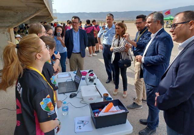 El consejero estuvo acompañado el coronel jefe de la Base Aérea de Alcantarilla, José Alberto Lens, y el coordinador nacional del proyecto Esero de la Agencia Espacial Europea, Domingo Escutia.