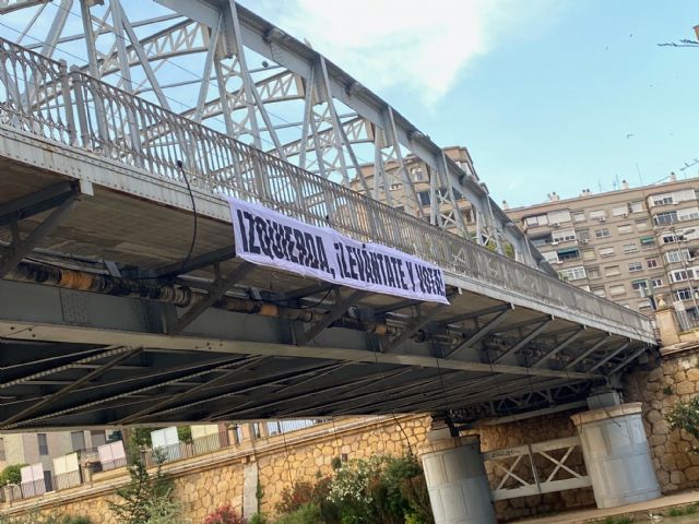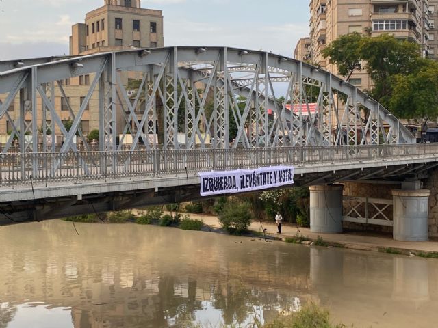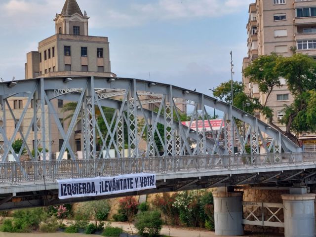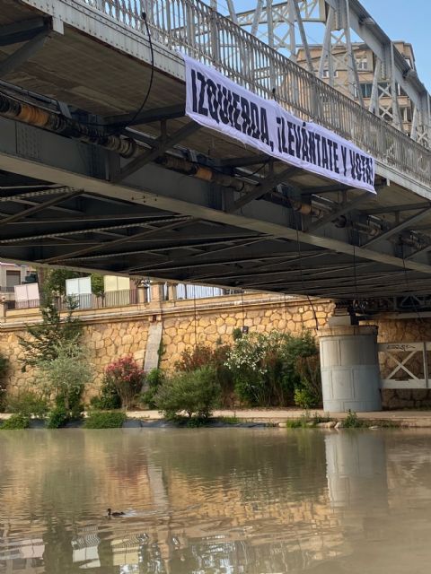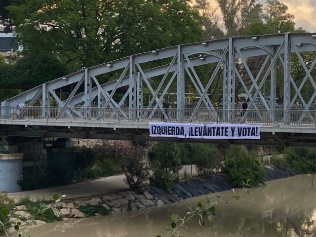 Cuando faltan apenas unos días para la celebración de las Elecciones Municipales y Autonómicas, un grupo anónimo de ciudadanos/asha colgado un amplio cartel en el Puente de Hierro de la ciudad de Murcia con el mensaje "Izquierda, ¡levántate y vota!", trasladando a la ciudadanía progresista de la Región de Murcia la necesidad de acudir a las urnas el próximo domingo 28 de mayo.